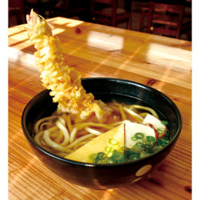 創業当時から長年常連客に愛され、3年ぶりに営業を再開した『こむぎや』。閉店を惜しんでいたファンからは喜びの声が上がる人気ぶり。麺からは小麦の豊かな風味をしっかりと感じられ出来たてにこだわった美味しさに魅了される。「くぼさんのとうふ」を使用したおでんも店主のおすすめ!注文が入るごとに揚げる天ぷらと、揚げたて出来たての美味しさをぜひ堪能してみて。