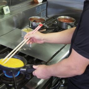 オムライスと言えばココ、と言われる老舗の専門店。小で2個、中で3個、大は4個の卵をたっぷり使いケチャップライスの具はあえて玉ねぎとソーセージにすることでソースとのバランスが絶妙に。