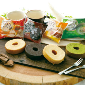 「より多くの方に知ってもらいたい」との想いから、工場直売でバウムクーヘンの販売を開始!直売所限定の「食べ歩きバウム(各150円)」は、チョコバナナや、まっ茶×ホワイトチョコなど4種類をご用意。小・中・高校生は学割で1本・100円になるサービス(※1人1本まで)があるのも嬉しい。ネットではギフトにも最適なバウムクーヘンのセットや低糖質商品も販売しているので要Check!