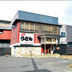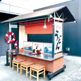 地元で愛され続ける『めりけんや』が新たに伏石町にOPEN!座席の間隔が広く天井が高い店内は開放感があり、ゆっくりと食事を楽しむことができる。長年、試行錯誤を繰り返した麺は、しっかりとしたコシを残しつつ、独特なモチモチ感を感じる。また、テラス席にはJR高松駅構内で営業していた『連絡船うどん』の屋台が移設されているので気になる方はぜひ一度訪れてみて。