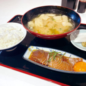 旬の魚とこだわりの米を味わうことができるこちら。ブリやタイ、サワラなど、その時々で1番美味しい魚をお刺身や漬け、揚げ煮などでいただける。魚の旨味がそのまま溶け出したあら汁は、奥深い味わいに。