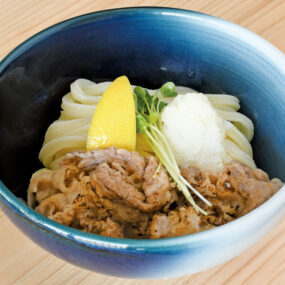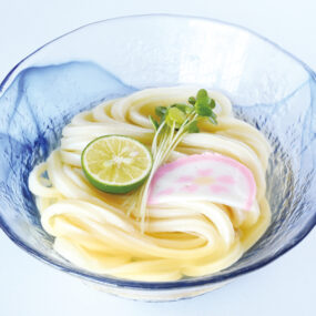 6種類の削り節を使った香り高い出汁を「すだち冷やかけ」用にアレンジ。麺のコシと弾力が際立つさっぱりとした一杯。