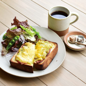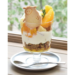 喫茶では、こだわりの食パンを楽しんでもらえるようホットサンドやオープンサンドを数種類提供予定。季節のフルーツを使ったパフェには羊のクッキーをトッピング!