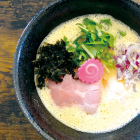 名古屋の名店で修業を重ねた店主が津田にラーメン店をOPEN!こちらのメニューは、甘海老×鶏白湯×魚介出汁を掛け合わせた、エスプーマのクリーミーなスープが自慢の「えび白湯らぁ麺」と魚介ダシ×鶏ガラのWスープに数種類の醤油をブレントした淡麗スープの「えび清湯らぁ麺」の2種類。和え玉やトッピング、シメ、サイドメニューなどもぜひ楽しんでみて。