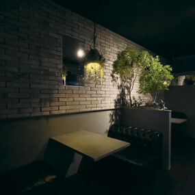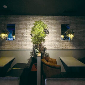 街角に灯るかがり火のように、ゆったりとした時間の流れる小さなカフェバー『Cagalli』。この度テーブル席側の壁面に古材レンガを貼り合わせ、アンティークな雰囲気が漂う空間にリニューアル!また、ところどころに埋め込んだミラーにより、抜け感が生まれ開放感も感じられる。グリーンを基調にした装花がさらに落ち着きのある空間を演出してくれる。ゆったりとした時間を過ごして。