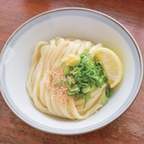 ダシや薬味などを調節して自分の好きな食べ方ができる完全セルフサービス制。初めての人にも分かりやすく説明、誘導してくれるので安心して讃岐うどんスタイルを楽しめる。手作業から生まれるこだわり麺の至福の一杯をぜひ。