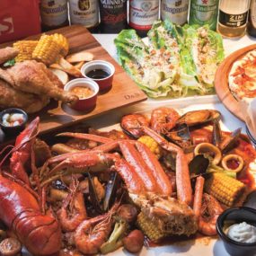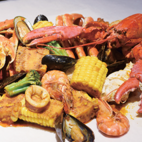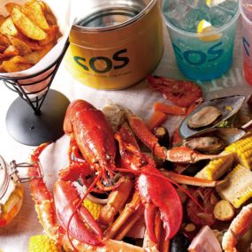 カニやエビ、野菜などを豪快に机の上に広げて手掴みで食べる『WILD FINGER SOS』。4~5人用の「スペシャルパック(9,960円+税)」の他、2~3人用の「SOSパック(3,980円+税)」や「漂流パック(2,780円+税)」をご用意。その他、1品料理も評判なのだとか。インスタ映えする店内で賑やかで楽しい時間を過ごそう!