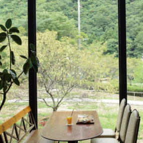 選んだレコードを実際に手に取って触ったり、試聴機で聴いて楽しめるのが他にはない魅力。自然に囲まれたカフェで季節の移ろいを感じながら、お気に入りの1枚を見つけて。現役DJのオーナーが設立したレーベルの作品も購入できる!
