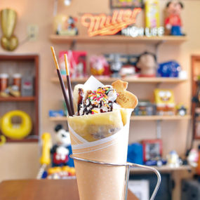 アメリカンヴィンテージ×昭和レトロをモチーフにしたクレープ専門店。ほんのり甘くもっちりとしたクレープをお手頃価格で楽しめる。最新情報はInstagram(@crepe_old_fashioned)をCheck!!