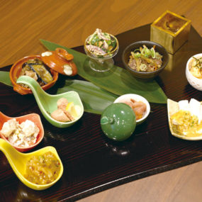 小鉢に盛られたお惣菜が可愛らしい居酒屋『OBANZAI 弥壱』。全10品のおばんざいから自由な組み合わせで注文できる。ダシから一品一品こだわり抜いた関西だしの鍋おでんも、地方から食べに来る人がいるほど絶品。