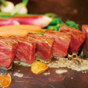 世代を超えて愛されている老舗ステーキ店。目の前の鉄板で焼き上げるライブパフォーマンスがあり、シェフとの会話を楽しみながら上質な本格ステーキを堪能できる。シェフの自慢の2コースをご用意しているので、気になる方はお早めに。
