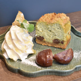 カフェ『ロジウラ』内に間借り営業中の『菓子ぶらん』。米ぬかを使用したグルテンフリーの甘さ控えめのスイーツは、試行錯誤を繰り返し完成した店主自慢の逸品。ケークサレのランチもおすすめ。