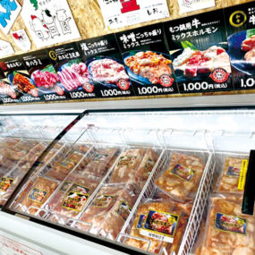 四国初の無人ホルモン直売所が土器町にOPEN!!看板メニューの牛ホルモンの他、牛ハラミや豚トロなどのメジャーなメニューに加えて、国産牛を中心とした希少部位や、生センマイなどもあるのが嬉しい。冷凍パックで販売され1袋約3人前が一律1,000円と手頃な価格で、自宅で焼肉やもつ鍋を楽しめる。店舗の最新情報はInstagram(@24h.horumon_marugame)をCheck!