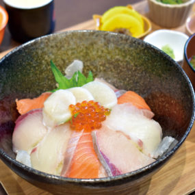 住宅街の一角にOPENしたカフェ。新鮮な魚介を使った海鮮丼や刺身のランチをはじめ、お肉を使ったランチを週替わりで提供。また、プラス料金で「デザートset」も可能!本格的な料理を白壁×ブラウンのインテリアでまとめられたカフェの空間でいただく、そのギャップもたまらない。店舗隣にはトリミングサロンを併設しており、愛犬と一緒に来店された方にはドッグランのあるテラス席をご案内。