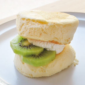 サラッとした口当たりの生クリームと新鮮なフルーツがパンケーキに合う人気のメニュー。
