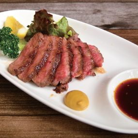 確かな経験に裏打ちされた、店主の目に適う厳選した素材をカジュアルに鉄板料理で楽しめる、路地裏の隠れ家。コショウを振りかけて、肉料理と相性抜群の「ジントニ」を片手に「オリーブ牛サーロインステーキ(2,500円+税)」や「ホルモンハンバーグ(840円+税)」などの肉料理を堪能しよう!