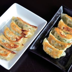 家族と一緒に餃子を包んだ幼少期の食卓の楽しさで、餃子に魅せられたという店主。独自にレシピを追及してたどり着いたのが、キャベツなどの具材を粗めに切った、具材の食感を残したジューシーな餃子。ひと口食べれば、仕上げに鉄板に回し入れたごま油の香りと大葉の爽やかさが、溢れる肉汁と共に広がるのが特徴。バドワイザーやギネスなどのクラフトビールも幅広く揃うので、お気に入りのペアリングを探してみよう。