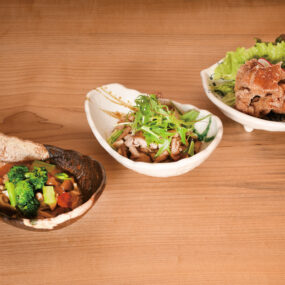香川町にOPENしたこちらは伝統的な建築と現代風のドライフラワーがマッチした、独特の雰囲気がおしゃれな古民家ダイニング。長年飲食業に携わってきたオーナーが独立し、“和気あいあいとした地域の憩いの場を作りたい”という想いから古民家を選んだそう。ドレッシングやマヨネーズまで全て手作りで、豆や発酵食品、野菜をふんだんに使い、身体に優しい料理を提供。ランチは全11品で、食べ応えのあるメイン料理と色とりどりの小鉢が並ぶ。座敷やテーブル席の他、個室があるのも嬉しい。和やかな古民家で癒しのひと時を過ごして。