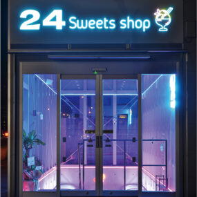 24時間営業・年中無休 ネオンの看板や商品が可愛い無人スイーツ専門店!