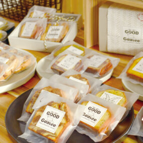 手作りランチと自家製のおやつを提供するカフェが詫間町にOPEN!店名はオーナーにちなんだ“ヤギの顎髭”の意味で看板やパッケージにヤギが登場。ランチは時季によって内容が変わり、お客さんの声を取り入れている。地元食材をふんだんに使用し、ソースなど細部まで手作りなのが魅力。焼菓子は常時6種類ほど、各4種類のフレーバーを用意。進化を続けるカフェにぜひ一度訪れてみて。