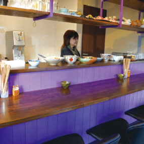 見た目も楽しい彩り豊かでボリューミーな定食、お弁当やおばんざいをリーズナブルな価格で愉しめるこちら。人気のトンテキ、チキテキのソースは手作りで、ご飯がススム濃い味付け。特に好評なのは、鶏皮の旨味と玉ねぎの甘味が効いた味噌汁。味噌汁を飲みに韓国から観光客が来店したこともあるそう。店主は、「話をするのが好きなので、ふらっと来て、カウンターでお酒を飲んで、話して楽しんでもらえたら」と話す。