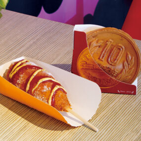 コリアンタウンである新大久保や鶴橋で流行っているものを高松で提供したいとOPEN!「ハットグ」は生地から手作り。カリモチ食感の生地の中にトロットロのチーズが入っている。夏季限定で「ピンス」も販売中!