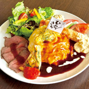 大人も子どももワクワクする場所『ひみつきち』が一宮町にOPEN!人気の「おとな様ランチ」がイチオシ!メインのオムライスにじっくり丁寧に焼き上げたローストビーフやエビフライ、キッシュ等、どれから食べようか迷ってしまう贅沢な一皿。夜は居酒屋メニューからイタリアンまで50種類以上の料理でおもてなし。成長に合わせたキッズチェアもあるので家族みんなで訪れてみて!