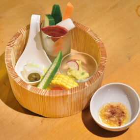 2024年8月、JR高松駅から徒歩10分の路地にOPENした『瀬to菜』。メニューはコースのみで、香川県産を中心とした四国の野菜、瀬戸内の魚介や肉など、旬の新鮮な食材を使用。和食を中心に創意工夫が凝らされた料理の数々は、食材の持ち味や料理人の手仕事を感じられる味わい。お酒も豊富に取り揃えているのでより一層食事がすすむ。店内はアート作品や彫刻家のインテリアを設えた上質な空間で、大切な人をおもてなしする際にもおすすめの一軒。