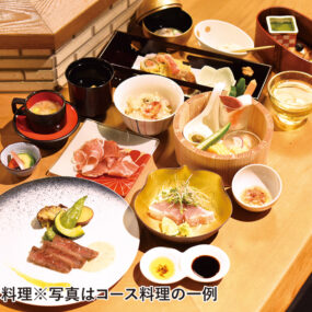 コース料理(1名・6,000円) ※要予約、写真はコース料理の一例(画像7、8枚目)