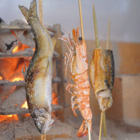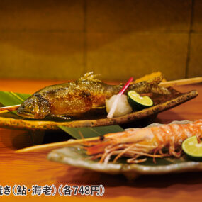 ・原始焼き(鮎・海老)※内容は時期により変更あり。(各748円)(画像3、4枚目)