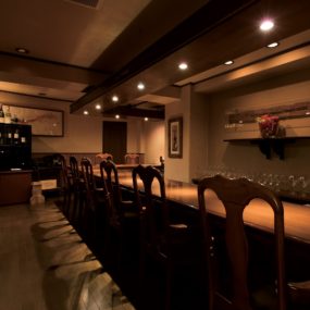 和の雰囲気のエントランスを抜けると広がる、重厚な空間。ここは、ワインの魅力を多くの人に知ってほしいとの想いが詰まった大人のためのワインバー。250種類以上のワインが眠るワインセラーや抜栓してもワインを酸化させずに保存できる四国でここだけのワイノットも完備。奥深いワインの世界への旅路はぜひここから始めて。