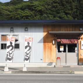イリコがガツンと効いた出汁と、国産小麦使用のモチモチ麺が魅力のこちら。『父母ヶ浜』から徒歩1分の場所にあり、地元の方や観光客からも人気を博している。天ぷら3種に炊き込みご飯が付いた平日限定の定食セットや、季節限定メニューもぜひ食べてほしい逸品。『父母ヶ浜』を訪れた際はぜひ立ち寄って。
