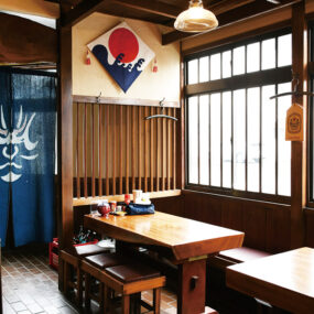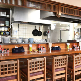 昭和を感じる居心地良い店内で食事を楽しむことができる。カウンター席も完備。