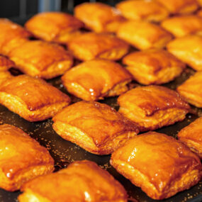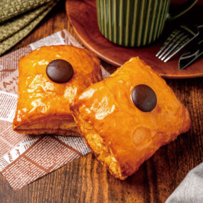 ミニサイズのベイクドパイは、カスタードクリームを別添えで持ち帰るスタイルになっていて、自分でクリームを絞ったり、ディップして楽しめる。