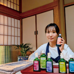 静かな山あいに佇む実家のお屋敷を活かした、自然に包まれる贅沢空間。使用するのは『WELEDA』の有機オイル。香りに癒されるマッサージの後は、白樺エキス入りの水で内側から巡りを整える。五感で季節を感じながら疲れをほどいて。