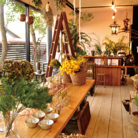 これまで同様、“季節を愛でる”をコンセプトに、メインスペースでは繊細な佇まいのドライフラワー、インテリアに面したスペースでは季節ごとの喜びを感じさせてくれる生花、庭では鉢植えや苗と、それぞれの植物の魅力を引き出した3つのスペースで植物のある空間を提案。リースや標本などの雑貨の販売やオーダーも可能なので、シーンに合わせて暮らしに取り入れてみて。