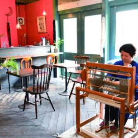 1つひとつ手織りされる作品を、実際に見て触れて購入することもできるアトリエショップが移転OPEN!作品とお客様を繋げる場所として、お茶をしたり作品を眺めたりと自由な時間を過ごすことができる。また、7月からは定期的に県外作家による個展やワークショップも開催予定!自分へはもちろん、プレゼントにもおすすめの手織りストールと、笑顔の素敵なコバヤシカナさんに会いにぜひ足を運んでみて。