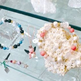 現地から厳選して買い付けた、高品質なパワーストーンを使ったアクセサリーが揃う。今流行のハーバリウムに天然石をミックスした「パワーストーン・ハーバリウム」が自分で作れるワークショップも大好評!願いを叶えるインテリアとして早くも話題。贈り物にもぴったり!7月28、29日のイベントでは「天然石詰め放題」も実施。気軽に足を運んでみて。