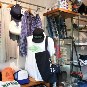 セレクトショップ『GIMMICK』が塩上町に移転し、食とアパレルが融合した複合施設『californiadeprtmentstore』へと生まれ変わった。2階の『GIMMICK』ではメンズアイテムを中心に、現地で買い付けたアメリカンカジュアルなアパレルや小物、スニーカーなど、遊び心のあるアイテムを幅広く展開。アメリカの西海岸テイストのアイテムがメイン。店主のこだわりと遊び心を感じる ラインナップから、お気に入りの 一品に出合えるはず。