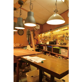 内装屋のことをもっと知ってもらいたいという想いでオープンした『TMS』。雑貨などインテリアにもこだわったおしゃれな空間でDIYができ、予約をすればレクチャーを受けられるのも魅力。近所の人や子育て中のママが気軽に集えてコーヒーなどを飲みながらゆっくりできる場所を提供している。パパはもちろんママからも好評。様々なワークショップも開催しているので、ぜひ遊びに訪れてみて。