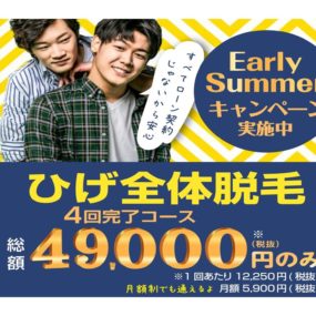 男性も脱毛をする時代!アットホームな雰囲気と丁寧な施術で創業以来多くのお客様がご来店。毎日の髭剃りや体毛が濃くてお悩みの方は必見です。最新脱毛技術で痛みも少なくオシャレ感覚で脱毛できる!ローン契約などもなく、定額制なので自分のペースで通えるのも魅力☆ムダ毛のお悩みを一緒に解決していきましょう。