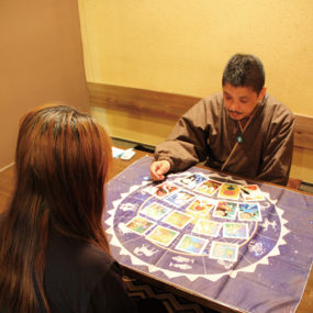 タロットカード、オラクルカード、西洋占星術、九星気学、四柱推命、手相、個性心理学、中医気功学等、現在8人以上の占い師が在籍。料金は30分3000円から。