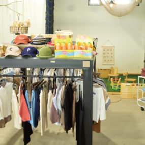 夏の生活を楽しくしてくれる雑貨も数多くスタンバイ。子ども服だけではなく、キュートな帽子や雑貨もあるのでおすすめ。大きな白い看板を目印に訪れてみて。