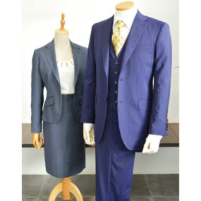 オーダーから約28日~40日で、ひと味違うこだわりのスーツが完成。女性スタッフも常駐する開放感あるスタイリッシュな店内。普段着ているスーツを持参すると、オーダーのイメージがつきやすいのでおすすめ。