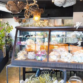 店先にはあふれるようなグリーン、中に入れば色とりどりの花たちが迎えてくれる。他にない珍しい植物や花も多く、時には生産地へ足を運び素材を探すことも。スクールやワークショップなども開催。ブライダルの相談も気軽にどうぞ。