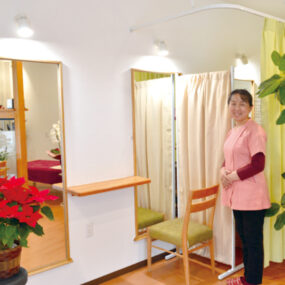 マッサージ指圧師の国家資格を持つ、優しく落ち着いた雰囲気の店主が迎えてくれる。美容院をリノベーションした店内は明るく居心地の良い空間で、BGMやライトの明るさにも配慮。間取りは変えず 大きな鏡は再利用している。移転に伴い営業時間は2時間延長し、前日までの予約で休日や時間外でも柔軟に対応。前店舗からのメニューや料金は据え置きで 男性も入店OK。詳細はHPからCheck!