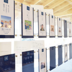 メッセージを書いた紙はこちらの投函箱へ。後日、本の白紙ページにメッセージが追加され、本が厚みを増すごとに、そのものが持つ物語が豊かなものになる。