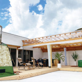 海まで徒歩5分と絶好のロケーションが魅力のゲストハウスがOPEN!広々としたプライベート空間では、大型スクリーンで好きな映画や音楽が楽しめる。また、開放感あふれるウッドデッキテラスには屋外で食事が楽しめるキッチンや話題のテントサウナ、ジャグジーがあり、非日常的な時間を過ごせる。キャンプやマリンスポーツなどのアウトドア用品もレンタルできるので、自分たちだけの特別な時間を満喫してみては。