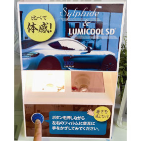 店内に設置した体感器で断熱効果を実際に体験することが出来ます。赤外線を抑えて涼しく快適な空間へ変えてみませんか。
