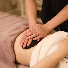 温かい玄式石とハンドマッサージの相乗効果で、お腹の悩みを解消(30分3.300円)